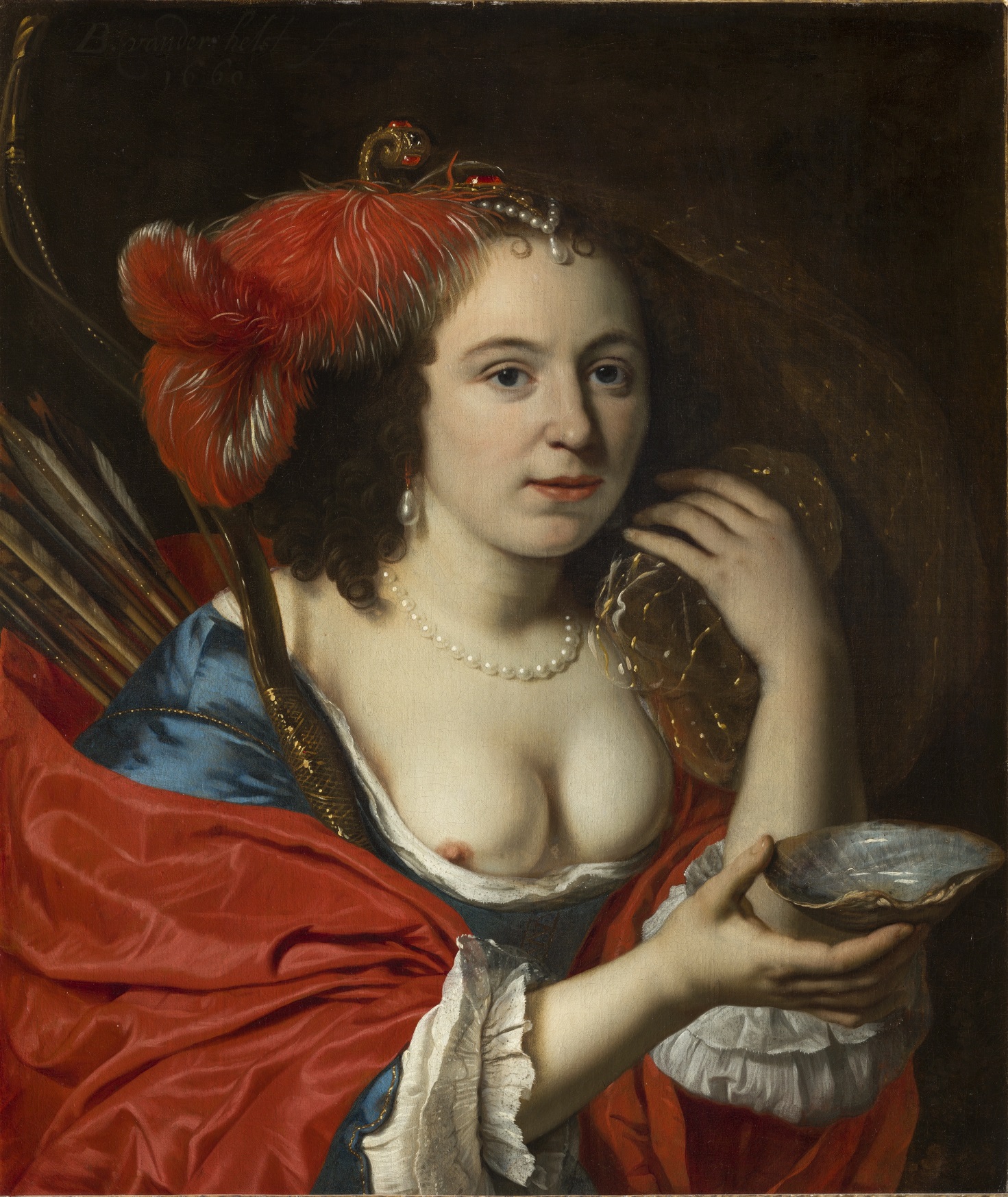 艺术家把他的妻子描绘成波斯公主格兰尼达,而在二联画(pendant painting)中的另外一幅中把他自己画作牧羊人戴菲罗斯(Daifilo)。他们是当时流行的霍夫特(Pieter Corneliszoon Hooft)所著的田园诗《格兰尼达》(1605)中的一对情侣。画中的女士肩上挎着弓箭,但她那身诱人的装扮却不像猎人的装束。性感的意味很明显。巴塞洛缪斯·范德·赫尔斯特是一位非常成功的肖像画家,他在阿姆斯特丹与伦勃朗是竞争关系。