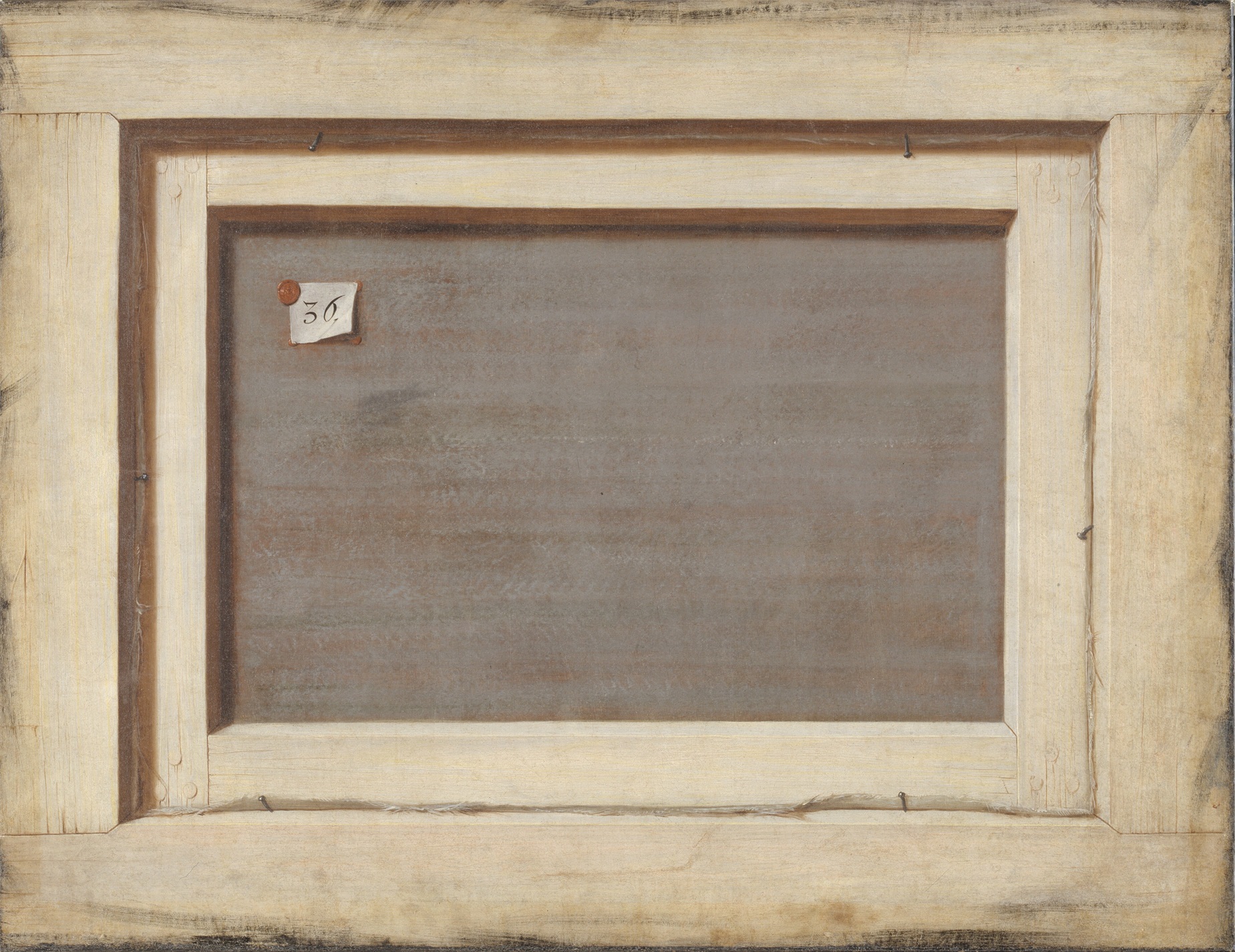 眼睛一定是被欺骗了!从远处看,你是不是觉得画家真的将一幅作品画面朝下背面朝上地放着。当你靠近它时,你会意识到并非如此而是眼睛被欺骗了。我们面对的是世界上为数不多的拥有两个背板的艺术作品之一。由于它的意想不到性和对观众的误导性,这幅画作很显然是非常适合收藏进皇家艺术珍宝阁(kunstkammer - cabinet of curiosities)的选择。那时,这间艺术珍宝阁仍然被安置在哥本哈根宫内,但当国王配置了一个新的艺术珍宝阁的时候,这幅作品就成为了其中的一个“透视艺术间”(Perspektivkammer)的一部分。吉斯布瑞兹(Gijsbrechts)就是1668-1672年间为丹麦国王服务的宫廷艺术家。
