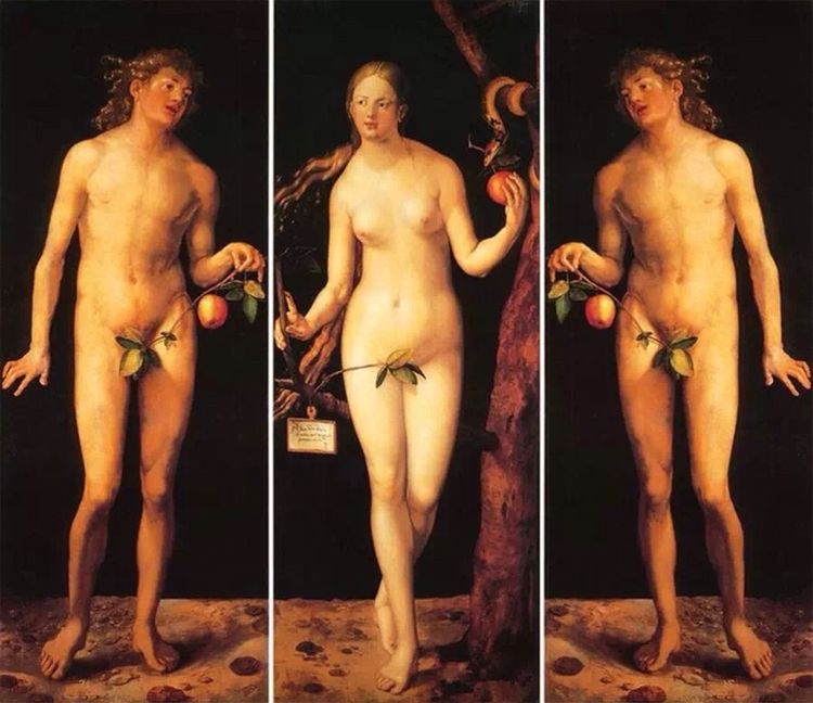 亚当与夏娃 1507年 丢勒 德国 209cm×81cm(左) 209cm×83cm(右) 板 油彩 马德里 普拉多博物馆藏